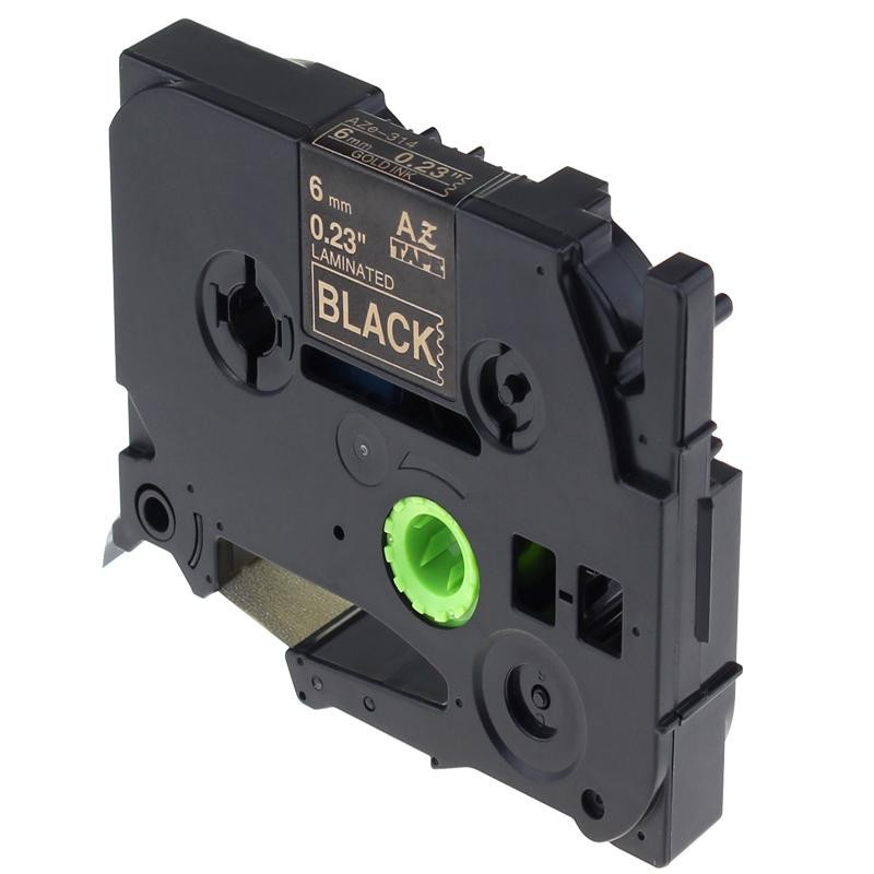Kompatibilní páska s Brother TZ-314 / TZe-314, 6mm x 8m, zlatý tisk / černý podklad
