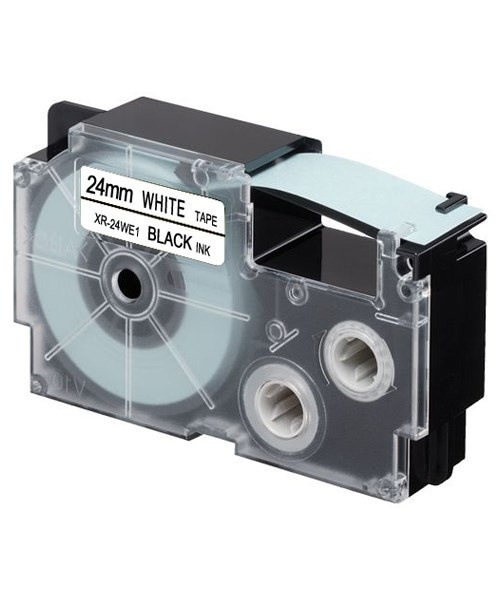 Casio XR-24GWE, 24mm x 5,5m černý tisk / bílý podklad, extr.adh. kompatibilní páska