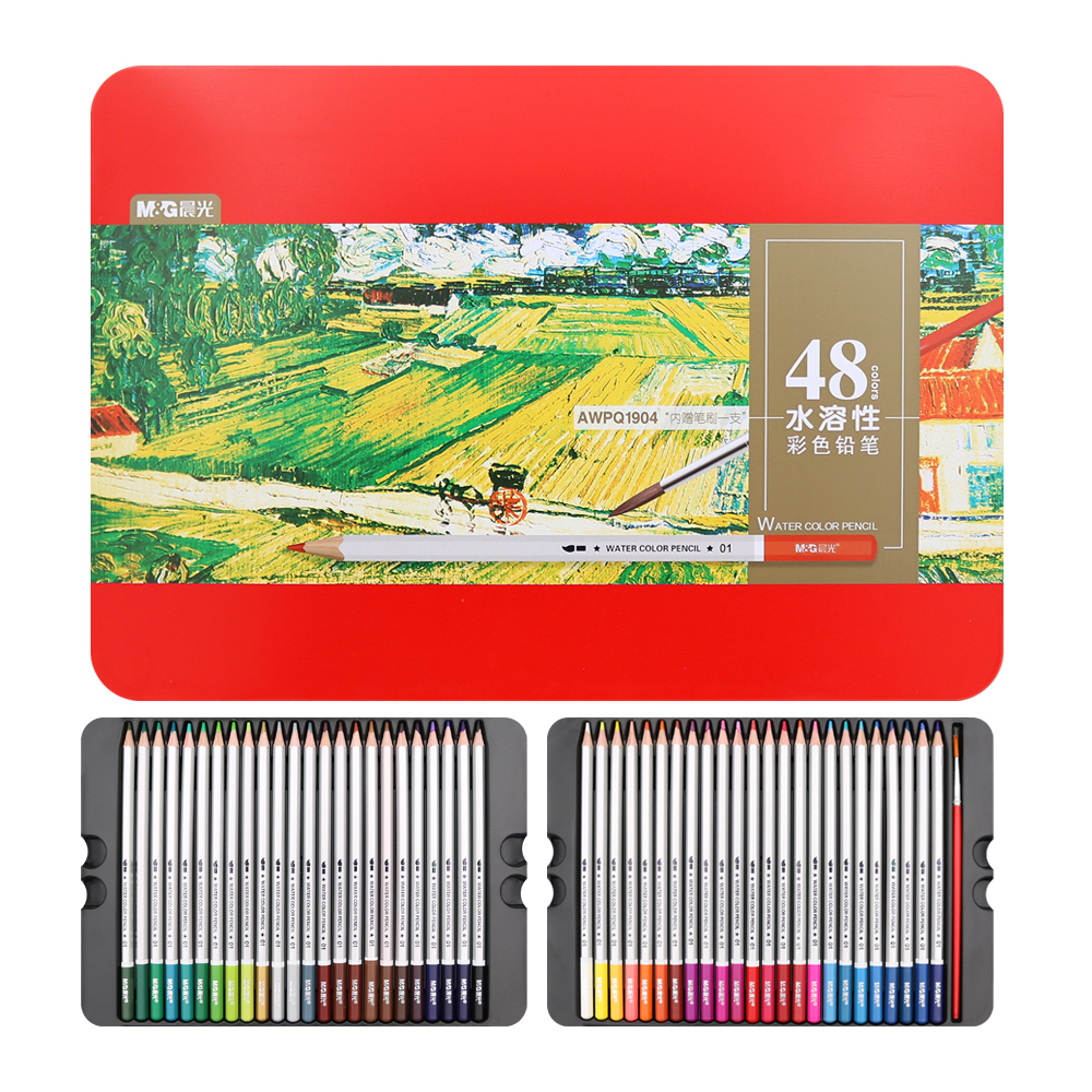 Pastelky akvarelové/šestihranné M&G v plechovém boxu, sada 48 ks