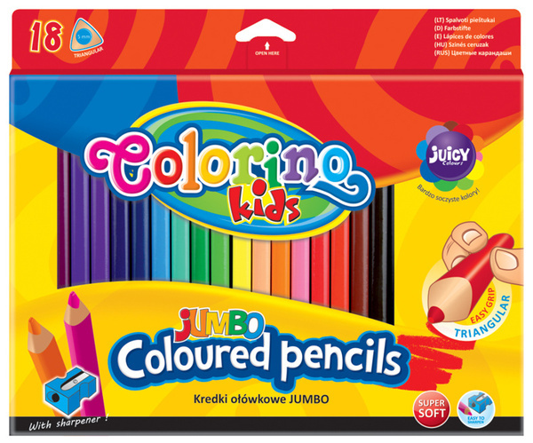 Kredki 18-kol. trójkątne + temperówka Jumbo Colorino, Patio