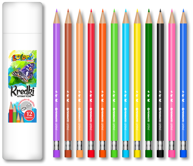 Kredki automatyczne w tubie 12-kol. + temperówka Kolori, Penmate