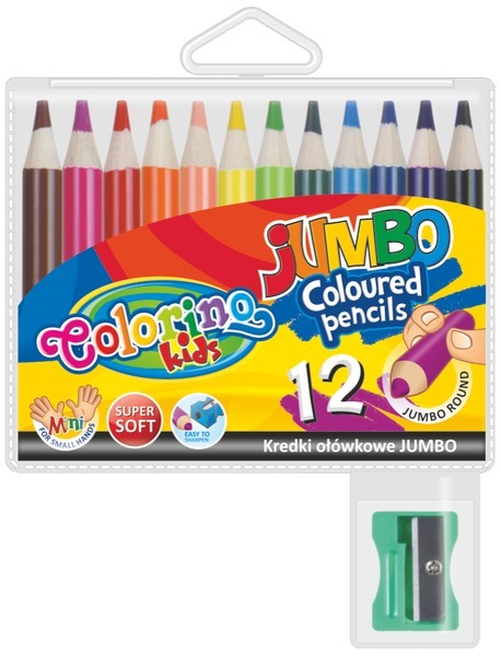 Kredki 12-kol. Jumbo + temperówka 9 cm, Colorino Kids