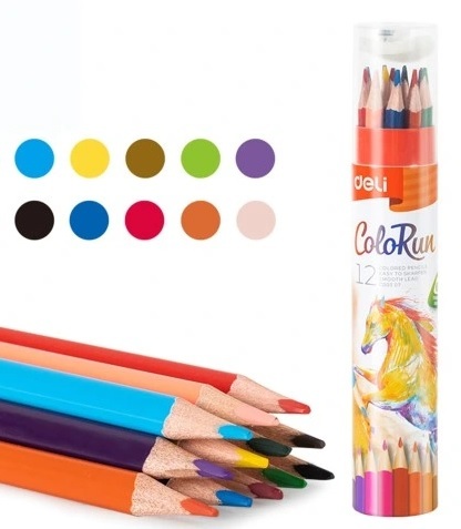 DELI Kredki ołówkowe 12szt tuba + temperówka