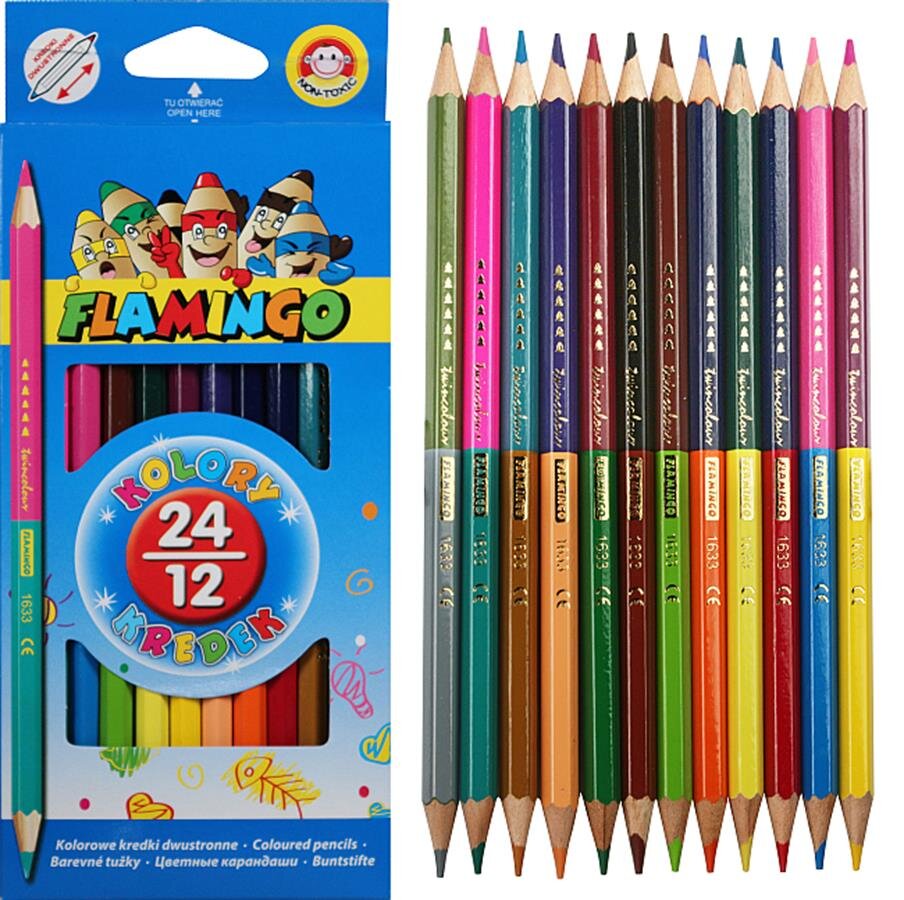 Kredki ołówkowe dwustronne 12/24 kolory FLAMINGO 175044