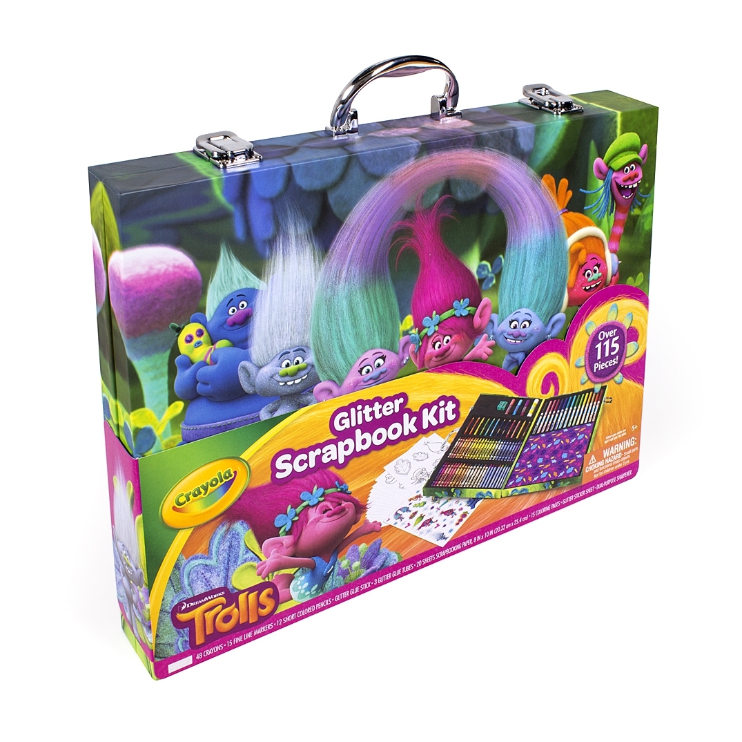 Crayola velká kreativní sada v kufříku ve stylu Disney Trolové se 115 ks výtvarných potřeb pro malé umělce s voskovkami, pastelkami a fixami.