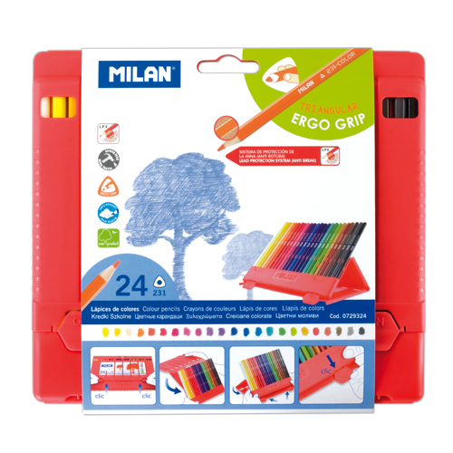 Ergonomicky tvarované pastelky, trojhranné pro lepší uchopení - 24 ks balení. Pastelky jsou baleny ve snadno přenosné krabičce odolné proti nárazu či rozbití, která zároveň funguje jako lehce skládatelný a praktický stojan. Pastelky se vyznačují technologiemi LPS (Lead protection system), který zabraňuje nechtěnému zlomení tuhy při nešetrném zacházení.