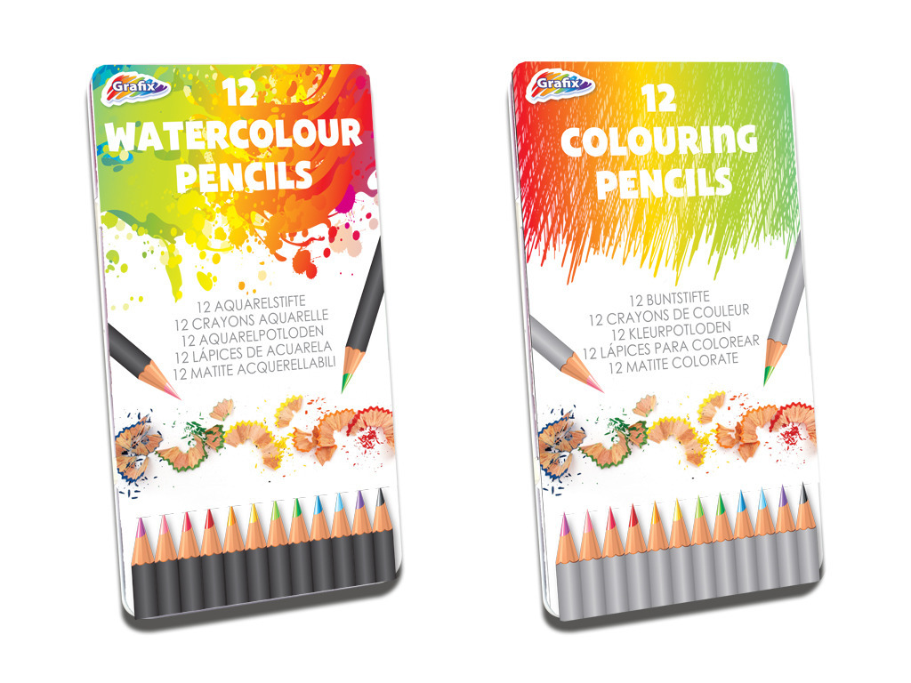 Pastelky v kovové krabičce, dva druhy vodové/klasické, 12 ks. číst celé