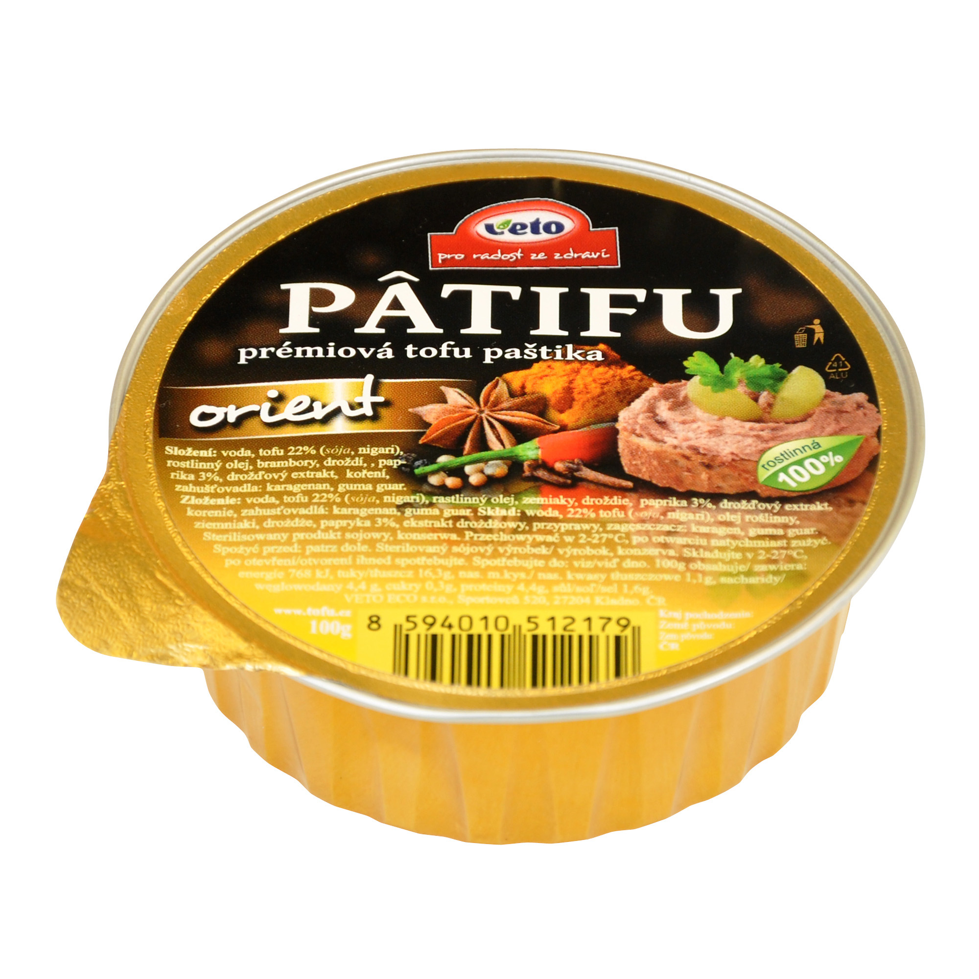 Objevte lahodnou alternativu k masovým paštikám - Veto Eco Patifu orient 100 g je prémiová tofu paštika s unikátním orientálním kořením, která nabízí jemnou konzistenci a vynikající vyváženou chuť. Je ideální pro každého, kdo hledá zdravou, chutnou a praktickou svačinku, kterou můžete mít vždy po ruce, ať už jste doma, v práci nebo na výletě.