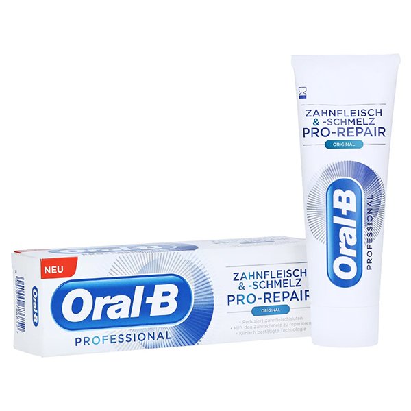 Oral-B Professional PRO-Repair Original - zubní pasta 75ml profesionální zubní pasta pro revitalizaci dásní a zubů a lepší ochranu před zubním kazem, vhodná také pro posílení zubní skloviny. Zubní pasta Oral-B z Německa je s Fluridem a poskytuje antibakteriální ochranu dásní, zubní pasta je vhodná pro děti od 14 let a pro dospělé. Svěží příchuť.