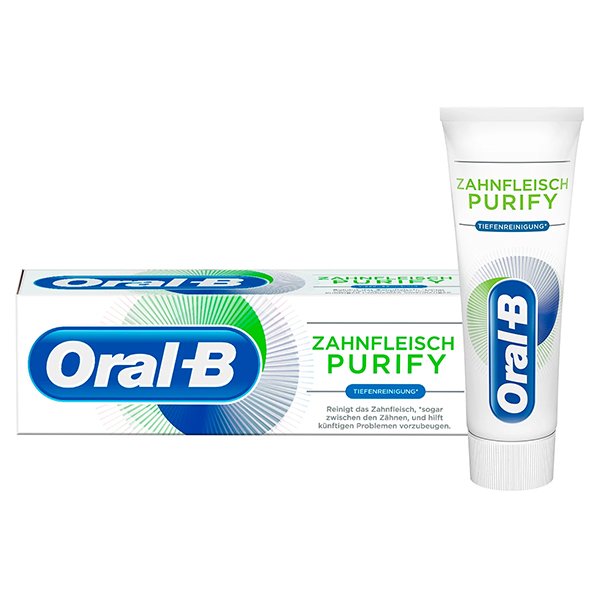 Oral-B Zahnfleisch Purity Tiefenreinigung - zubní pasta 75ml hloubkové čištění zubů a dásníprofesionální zubní pasta pro revitalizaci dásní a zubů a lepší ochranu před zubním kazem, vhodná také pro posílení zubní skloviny. Zubní pasta Oral-B z Německa je s Fluridem a poskytuje antibakteriální ochranu dásní, zubní pasta je vhodná pro děti od 14 let a pro dospělé. Svěží příchuť.