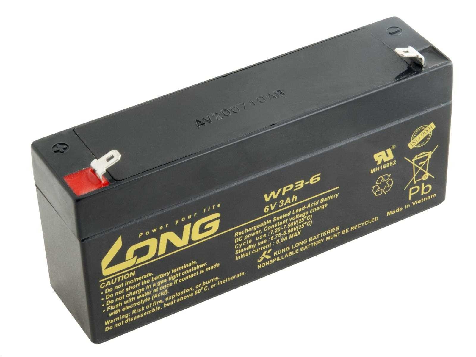 Long 6V 3Ah olověný akumulátor F1 (WP3-6)