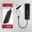 Kovové tělo hubu je vyrobeno z hliníku a zajišťuje tak jeho dokonalou mechanickou ochranu. Elegantní, jemně strukturovaný povrch brání nežádoucím otiskům. Napevno uchycený USB-C kabel délky 30 cm je ideální pro uživatele mobilních zařízení. Výhodou je samostatný USB-A port vpředu, který poslouží pro připojení objemnějších flash disků, čteček a dalších USB zařízení.