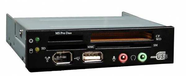 EUROCASE Card reader CR-03,AC97 + HD audio, Black USB 2.0, Firewire