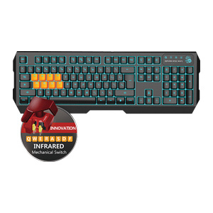 Elegantní neónově podsvícená herní klávesnice. 8 mechanické infračervených směrové kláves. Skvělá k hraní her nebo k práci.