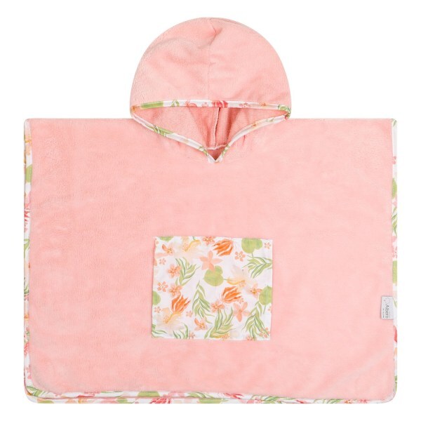 Kolor: różowe poncho obszyte bawełnianą lamówką z nadrukiem Hawaii