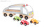 Dřevěný kamion Janod s třemi barevnými autíčky se stane věrnou hračkou malých závodníků. S malými dřevěnými autíčky je možné si hrát samostatně nebo je vozit na kamionu. Součástí auta je šňůrka, může tedy sloužit také jako tahací hračka.