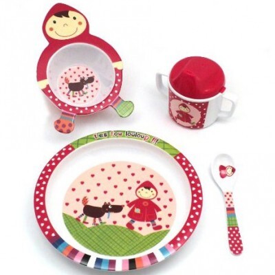 Potřebujete naučit vaše malé děti samostatně jíst? Zpříjemněte dětem chvíle u stolu vlastní jídelní sadou doplněnou obrázky z kolekce Hladový vlk francouzské značky Ebulobo. Melaminová jídelní sada s veselými motivy vám pomůže zvládnout první stolování s vašimi malými dětmi. Jídelní sada Karkulka je zabalena v pěkném dárkovém balení. Obsahuje talířek, misku, lžičku a hrneček s odnímatelným pítkem.