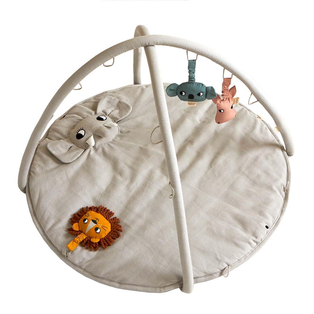 Dětská hrací aktivity deka s hrazdičkou obsahuje hračky ve tvaru roztomilých zvířátek. Je to skvělá první hračka pro miminko. Rozvíjí smysly miminka. Deka je pratelná. Vyrobeno ze 100% organické bavlny s GOTS certifikací. číst celé