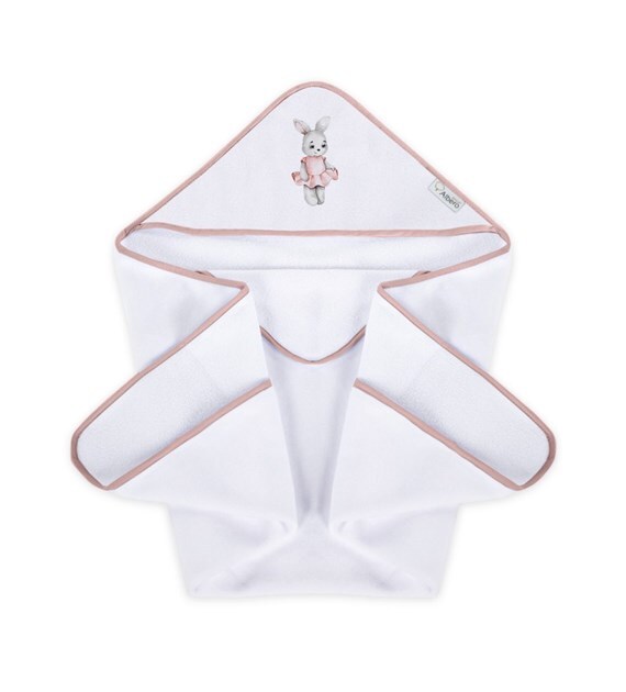 Okrycie kąpielowe dla niemowląt to niezastąpiony element wyprawki dla noworodka. Okrycie wykonane jest z termofrotte czyli dzianiny gdzie z zewnętrznej strony jest pętelka frotte, a od wewnętrznej miękki puszek. Takie rozwiązanie zapewnia miękkość oraz doskonałe właściwości termoregulacyjne. To sprawia, że dziecko czuje się po kąpieli komfortowo i przytulnie.