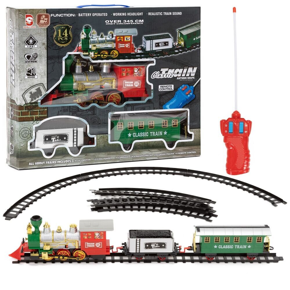 Elektrická parní lokomotiva s vagóny přináší neuvěřitelně realistický herní zážitek plný pohybu a zvuků. Dálkové ovládání, realistické zvuky a stoupající pára z komína věrně napodobují skutečný parní vlak. Vagóny se snadno spojují pomocí háků. Vyrobeno z bezpečných, certifikovaných materiálů, 100 % bez BPA, vhodné pro děti od 3 let. Ideální hračka pro malé milovníky železnice.