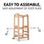 Rostoucí, stabilní a univerzální věž V závislosti na velikosti vašeho dítěte můžete nastavit nožní desku kuchyňského pomocníka do tří různých výšek. Robustní a stabilní konstrukce umožňuje vašemu dítěti používat Montessori věž až do hmotnosti 40 kg, ať už v kuchyni, u jídelního stolu nebo u umyvadla v koupelně.