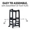 Rostoucí, stabilní a univerzální věž V závislosti na velikosti vašeho dítěte můžete nastavit nožní desku kuchyňského pomocníka do tří různých výšek. Robustní a stabilní konstrukce umožňuje vašemu dítěti používat Montessori věž až do hmotnosti 40 kg, ať už v kuchyni, u jídelního stolu nebo u umyvadla v koupelně.
