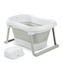 Snadná montáž, složení na plocho a snadné čištění pro každodenní život Pro sestavení rozložte obě stojiny a přitlačte dno. Když vaše dítě skončí s koupáním, můžete vodu rychle vypustit pomocí špuntu. Chcete-li prázdnou vaničku složit, otočte ji dnem vzhůru, stlačte dno a složte stojiny. Po složení zabere vanička s rozměrem 78 x 56 x 17 cm velmi málo místa a lze ji tak uložit do skříně, na polici nebo pod postel - ideální do malých pronajatých bytů nebo na cesty.