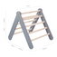 Dětský dřevěný žebřík je perfektní pomůcka pro pohybový rozvoj dítěte. Trojúhelník má tisíce využití: prolézačka, žebřiny, švédská zeď, domeček, bunkr. Dítě na něm může šplhat, podlézat, lézt po čtyřech, schovat se, klouzat a mnoho dalšího. Můžete jej doplnit o domácí dětské hřiště. Šedomodrý potah na Piklerův trojúhelník rozšíří zábavu vašich dětí. Potah mohou děti použít pro hru s domečkem nebo úkrytem, a užít si tak legraci na dlouhý čas, zejména v domácím prostředí.