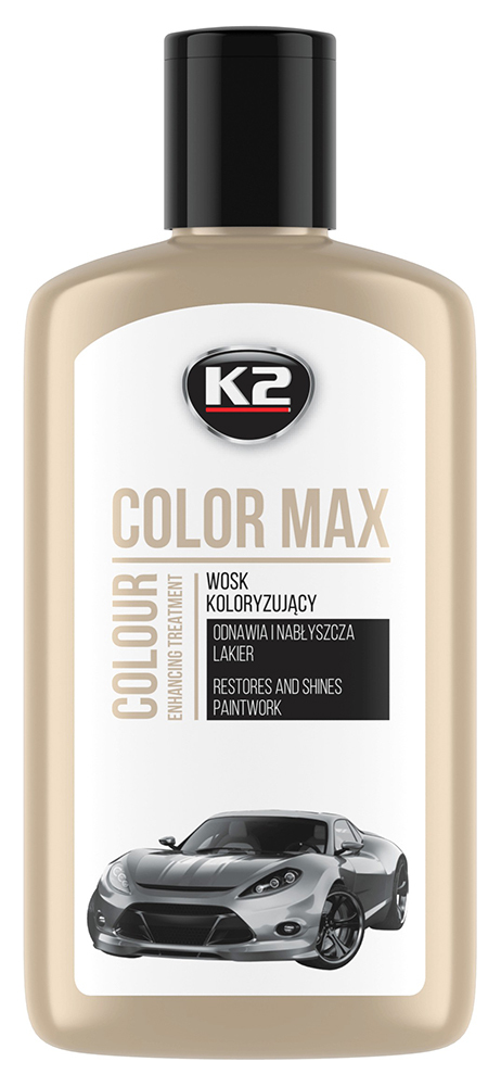 Bílý barvicí vosk K2 Color Max dokonale osvěží vzhled a oživí barvu nových i starších laků. Je určen pro uživatele, kteří chtějí zlepšit stav laku, aniž by museli korigovat povrchovou úpravu laku pomocí mechanického leštění. Bílý barvicí vosk K2 Color Max může být alternativou k oblíbené "pastelce" na vyplňování škrábanců.
