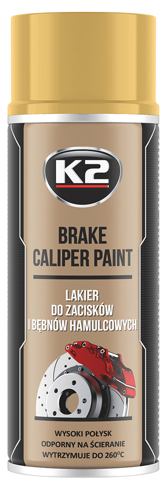 K2 Brake Caliper Paint je profesionální lak pro lakování třmenů a brzdových bubnů. Speciální složení barvy na třmeny bylo vyvinuto na základě pryskyřic nejvyšší kvality. Díky tomu tvoří K2 Brake Caliper Paint odolný nátěr s vysokou teplotní odolností, a to až do +260 °C. Laková vrstva vytvořená na povrchu třmenů po lakování je vysoce odolná proti oděru, mechanickému poškození, brzdovému prachu, chemikáliím (včetně kapalin na mytí ráfků), soli, benzínu, kyselým dešťům a nepříznivým povětrnostním podmínkám. Má také antikorozní účinek. Na lakování páru brzdových třmenů stačí jedna plechovka.