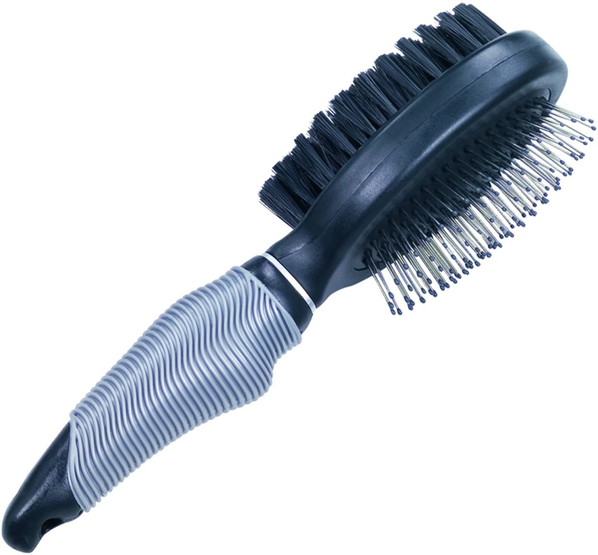 Profesionální oboustranný kartáč, pro rozčesání srsti, finální úpravu a podporu lesku srsti. Drátěná hlavice s ochrannými čepičkami pronikne až do podsady. číst celé