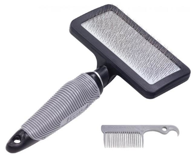 Profesionální kartáč s měkkými drátěnými štětinami Zejména srst s hustou podsadou, potřebuje pravidelné kartáčování, aby byly odstraněny přebytečné chlupy. Zamezuje vzniku zacuchaných chomáčů chlupů a účinnost kartáčování je maximální díky flexibilním hrotům kartáče. Malý kartáč pro jemné odstranění podsady a uvolněných chlupů v období línání. Rukojeť je tvarovaná pro pohodlné držení v ruce. Kartáč je ideální na úpravu srsti pro hrubosrsté a kudrnaté psy. Součástí balení je čistící hřeben zdarma.