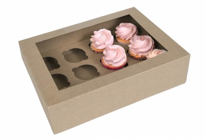 Papírová krabička 12ks Kraft papír s OKNEM, 12 cupcake - House of Marie