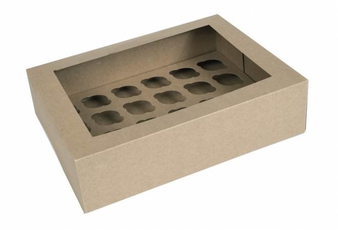 Papírová krabička 12ks Kraft papír s OKNEM, 24 mini cupcake - House of Marie