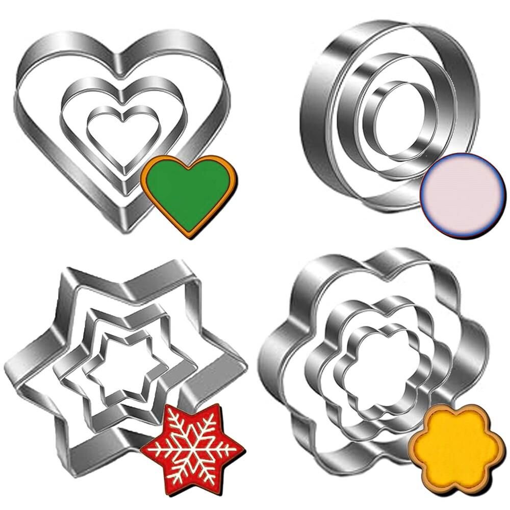 Tato sada obsahuje 12 ks vykrajovátek ve čtyřech tvarech: kolečko, srdce, hvězda a květina, každé ve třech velikostech. Díky tomu si snadno vyberete perfektní tvar a rozměr pro vaše cukroví, které bude nejen chutné, ale i krásné na pohled.
