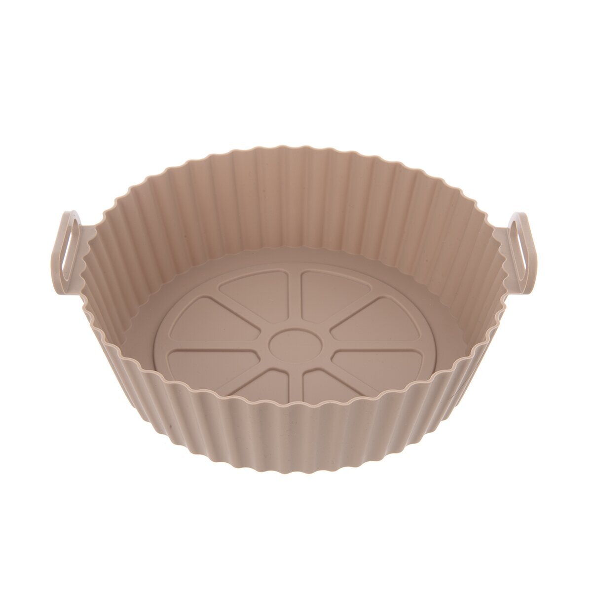 Silikonová forma do horkovzdušné fritézy chrání koš horkovzdušné fritézy před zbytky jídla, olejovými skvrnami a škrábanci. Prodlouží životnost koše, usnadní čištění a údržbu fritézy. Hodí se také do klasické trouby na přípravu zeleniny, těstovin, dietních jídel, je určena pro teploty od -20 °C do +230 °C. Materiál: silikon. Rozměry: pr. 23 cm, pr. dna 19 cm, v. 6 cm, v. s uchy 8 cm. Lze mýt v myčce, využít v troubě, v MVT, v mrazničce.