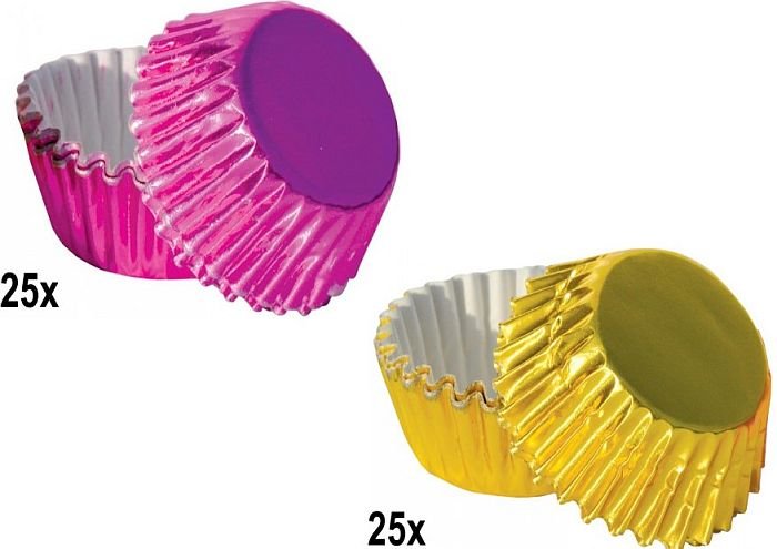 košíček d30x15mm pralinky, ZLATO/FIAL., 50ks, hliníkový