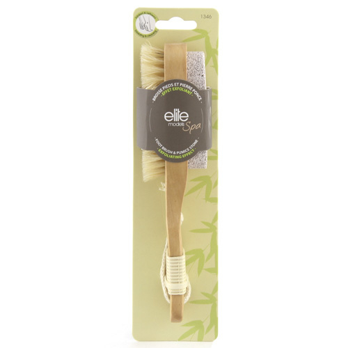 Kartáč z přírodních vláken a pemza je dokonálá kombinace pro hygienu nohou. Pemza odstraní odumřelou kůži a mozoly, kartáč důkladně vyčistí a odstraní nečistoty pod nehty, kolem nehtů a mezi prsty. Dřevěná rukojeť má protiskluznou úpravu. Luxusní zpracování značky Elite Models.Rozměr: 18,5 x 45 cm.