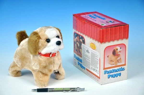 Pes salto plyš chodící 15cm na baterie v krabičce