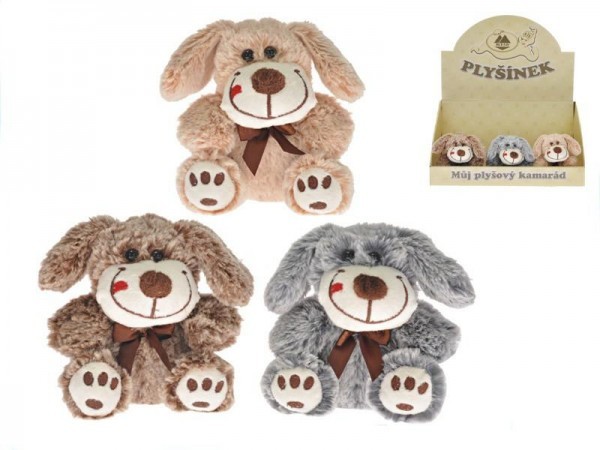 Pes/Pejsek sedící s mašličkou plyšový 12cm asst 3 barvy 12ks v boxu