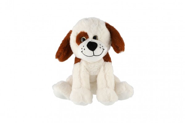 Pes/Pejsek sedící bílo-hnědý plyš 23cm v sáčku 0+
