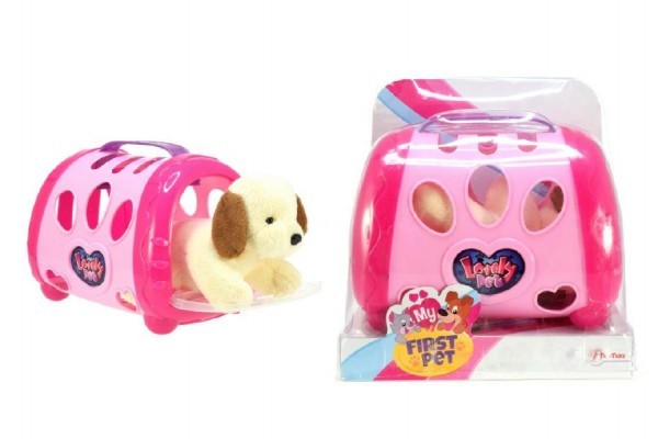 Mazlíček pes plyš v přenosném boxu plast 18cm v blistru