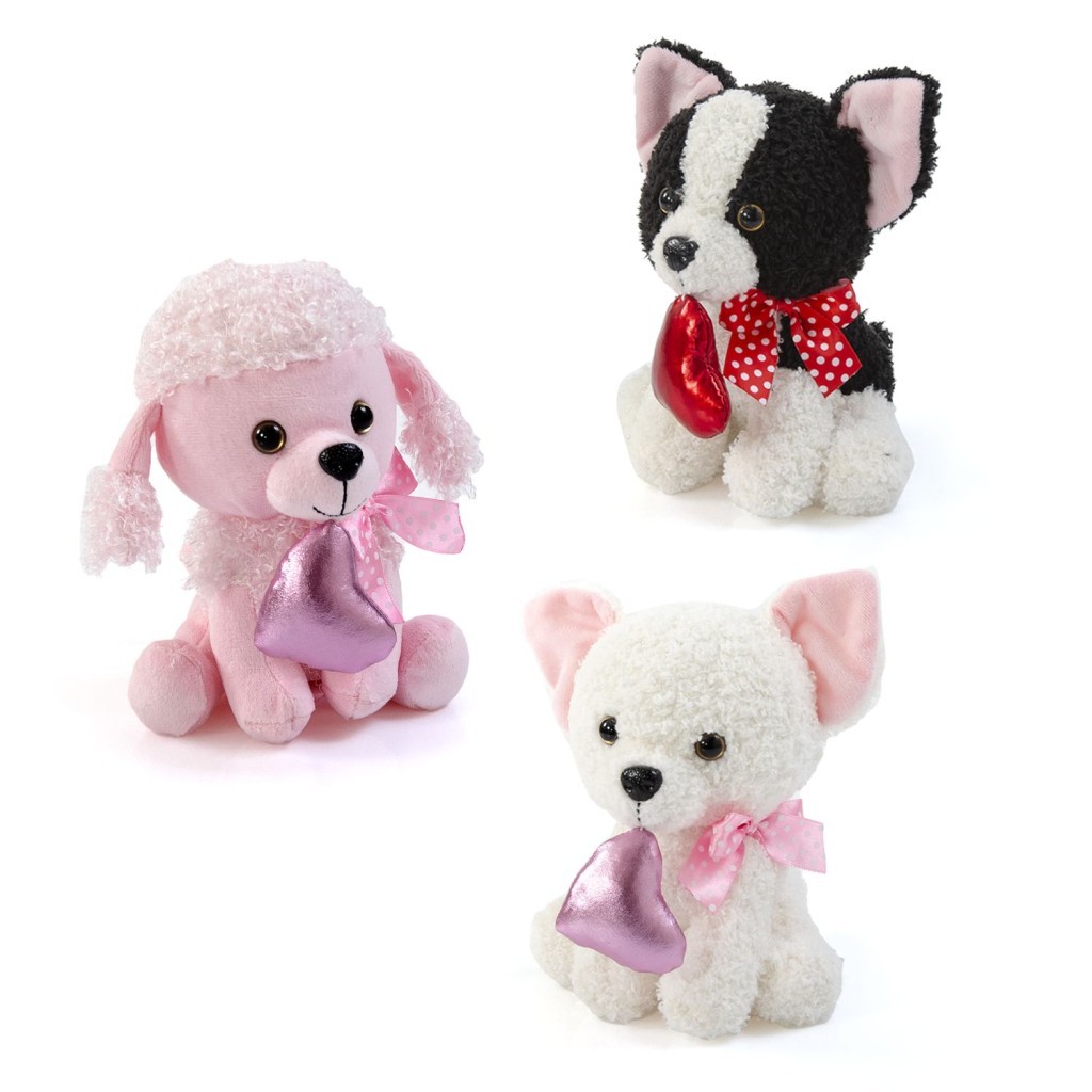 Plyšový pejsek se srdíčkem - 3 barvy - růžový, bílý a strakatý. Velikost 17 cm. číst celé