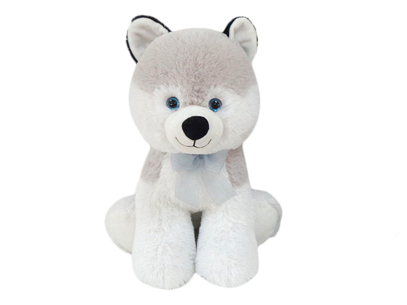 Pes plyšový 40cm sedící s mašlí 0m+ husky v sáčku