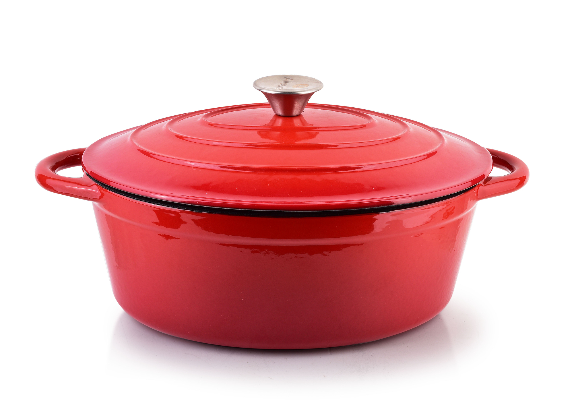 Gęsiarka żeliwna w kolorze czerwonym z serii RODELUXE to wysokiej jakości naczynie kuchenne, które jest idealne do przygotowywania różnorodnych potraw, w szczególności duszonych mięs, zapiekanek oraz pieczeni. Oto kilka cech charakterystycznych takiej gęsiarki: Materiał: Wykonana z solidnego żeliwa, które zapewnia równomierne rozprowadzanie ciepła oraz długotrwałe utrzymywanie temperatury. Kolor: Elegancki czerwony kolor, który dodaje stylu każdej kuchni. Pokrywa: Żeliwna pokrywa zapewniająca szczelność oraz optymalne warunki do duszenia potraw. Rączki: Ergonomiczne uchwyty ułatwiające przenoszenie naczynia, nawet gdy jest gorące. Seria RODELUXE: Charakteryzuje się wyjątkowym designem oraz najwyższą jakością wykonania.Takie naczynie jest nie tylko funkcjonalne, ale również stanowi piękny element wyposażenia kuchni. Idealne dla miłośników gotowania, którzy cenią sobie trwałość i estetykę swoich narzędzi kuchennych.wymiary: 30x38(uchwyty)xh17cm z pokrywąwymiary naczynia:waga: 5,55kgzapakowana jednostkowo w color box 33x27xh13cm