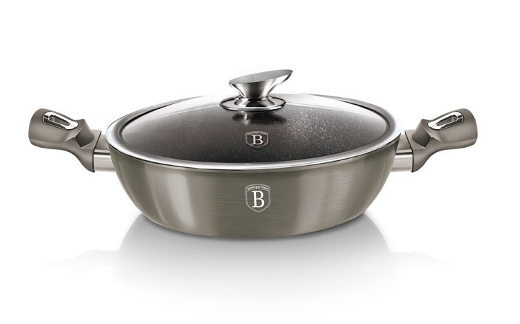 Pekáč kulatý s mramorovým povrchem a poklicí 28 cm Carbon Metallic Line BERLINGERHAUS BH-1241