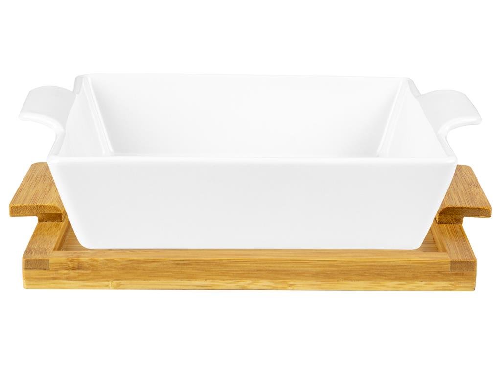 KERAMICKÁ ZAPÉKACÍ MÍSA MODENO NA BAMBUSOVÉ PODLOŽCE ČTVERCOVÁ 26 CM