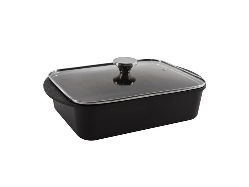 Díky masivní odlévané konstrukci a kvalitnímu nepřilnavému povrchu PFLUON GRANIT si můžete být jisti vynikajícím výsledkem a pohodlným vařením bez zbytečného připalování. Pekáč je vyroben z lehkého hliníku a má praktická držadla, která usnadňují manipulaci. Součástí je také skleněná poklice s otvorem pro únik přebytečné páry, která přispívá k dokonalému pečení a uchování šťavnatosti jídel.