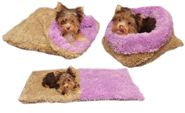 Marysa pelíšek 3v1 pro štěňátka/koťátka, DE LUXE, béžový/fialový