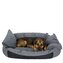 Pelíšek je vyroben z voděodolné tkaniny a má protiskluzové dno, takže zůstává stabilní i na kluzkých podlahách. Oboustranný polštář nabízí dva vzhledy v jednom, zatímco měkké, vysoké okraje poskytují oporu a ochranu před průvanem.